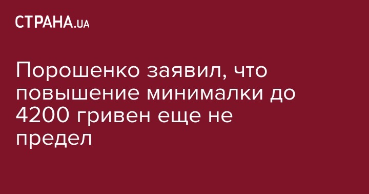 Президент Петр Порошенко заявляет, что рост минимальной зарплаты до 4200 гривен во втором квартале этого года не является пределом. Об этом сообщает УНИАН.