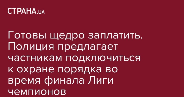 Готовы щедро заплатить. Полиция предлагает частникам подключиться к охране порядка во время финала Лиги чемпионов
