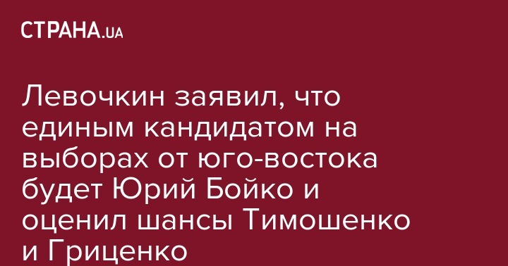 Народный депутат и один из лидеров "Оппозиционного блока" Сергей Левочкин считает, что единым кандидатом на президентских выборах станет лидер "Оппозиционного блока" Юрий Бойко, а у Анатолия Гриценко неплохие шансы на победу.