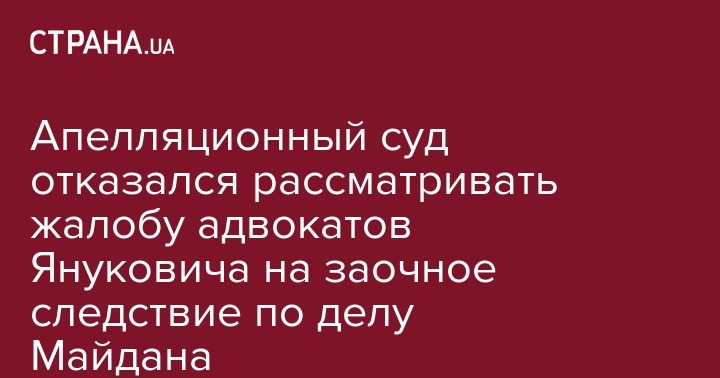 Апелляционный суд Киева отказался принять к рассмотрению жалобу защиты Януковича на решение суда, которым было удовлетворено ходатайство Департамента специальных расследований Генеральной прокуратуры Украины о заочном досудебном расследованим в отношении экс-президента Украины Виктора Януковича.
