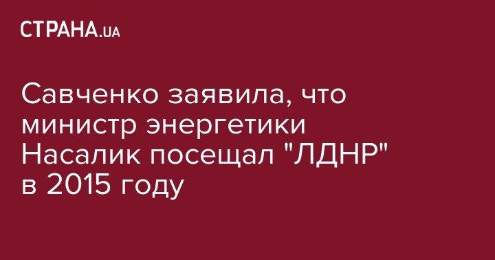 Савченко заявила, что министр энергетики Насалик посещал "ЛДНР" в 2015 году