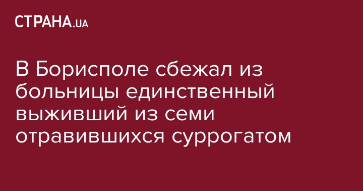 Из больницы сегодня утром сбежал единственный из семи пострадавших, который выжил после употребления паленого спиртного в Борисполе.