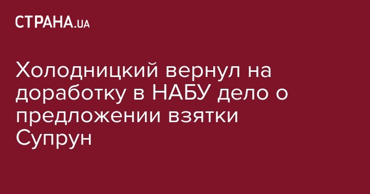 Холодницкий вернул на доработку в НАБУ дело о предложении взятки Супрун