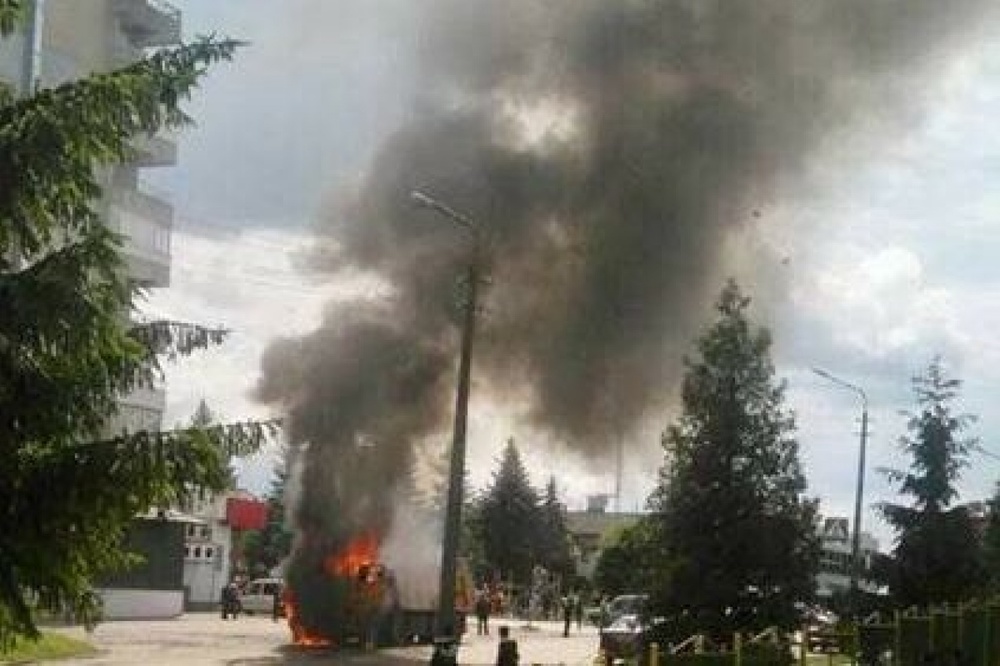 Во вторник, 22 мая, в Дрогобыче Львовской области загорелся автомобиль КамАЗ, водитель успел выскочить из кабины.