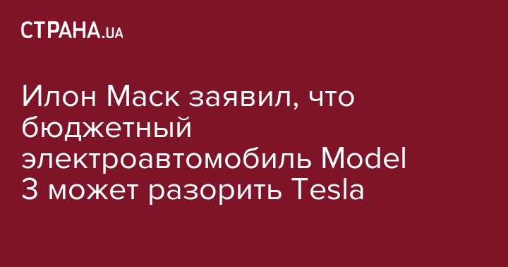 Миллиардер Илон Маск сообщил, что производство бюджетного электрокара Model 3 может разорить компанию Tesla.