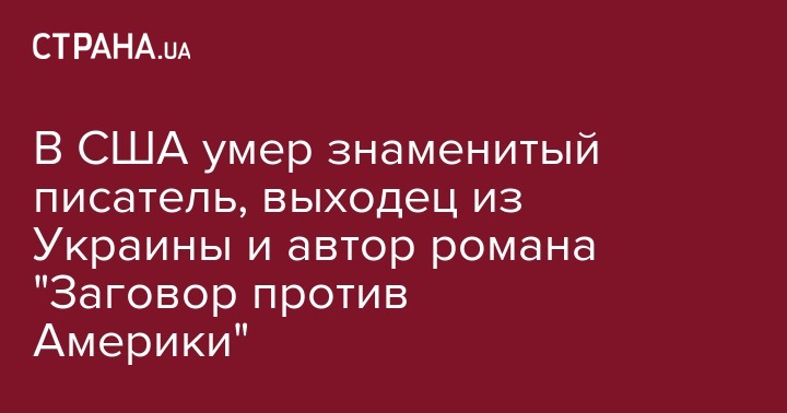 В США умер знаменитый писатель, выходец из Украины и автор романа "Заговор против Америки"