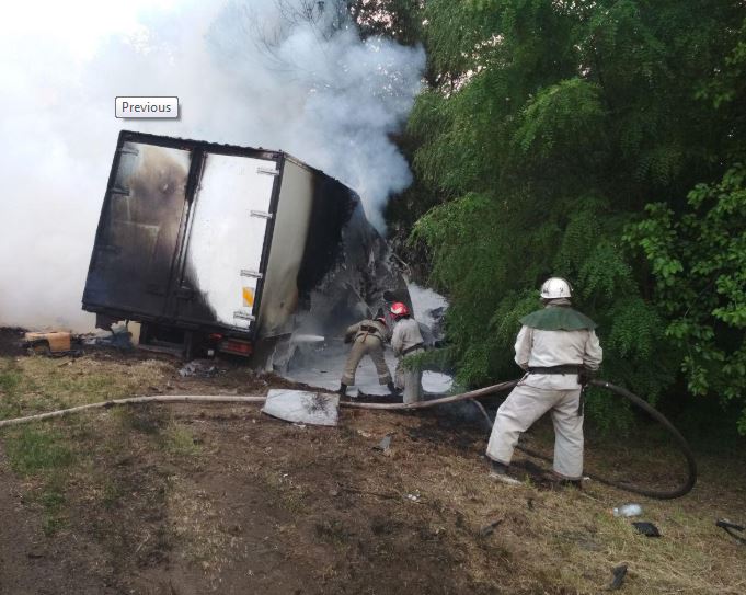 Вчера, 22 мая, в Запорожской области из-за столкновения на автотрассе Харьков - Симферополь загорелись грузовик Mercedes и автомобиль Mazda, водитель легковушки погиб.