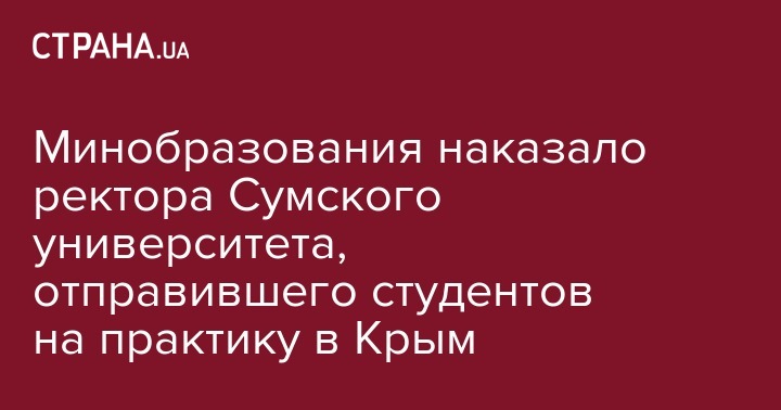 Министерство образования и науки объявило выговор ректору Сумского педагогического университета Юрию Лянному за то, что он отправил своих студентов на практику в оккупированный Россией Крым. Об этом сообщает пресс-служба МОН.
