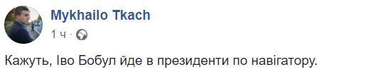 "Говорят, Иво Бобул идет в президенты по навигатору", - иронизирует журналист Михаил Ткач.