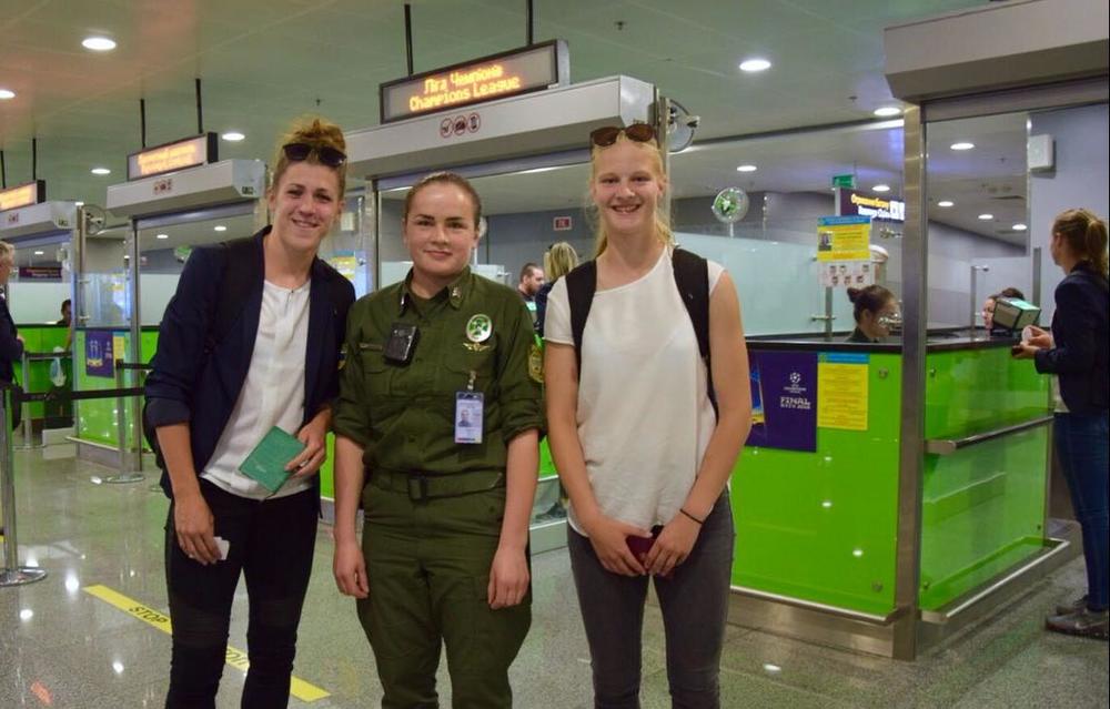 В Киев прилетели две футбольные команды "Вольфсбург" и "Олимпик Лион", которые будут соревноваться 24 мая в финале Лиги чемпионов среди женщин.