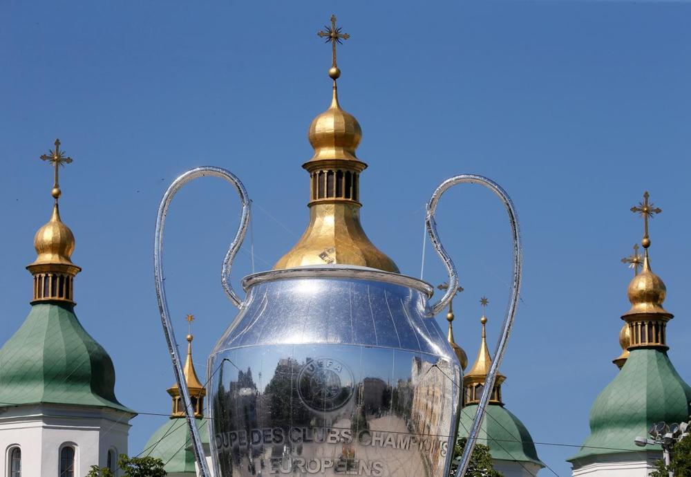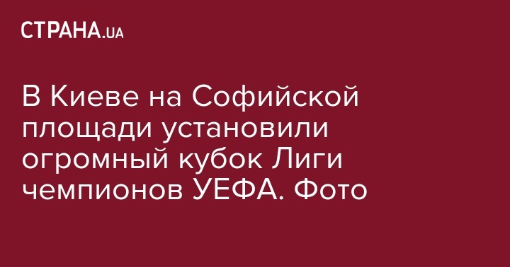 В центре Киева на Софийской площади установили огромный кубок Лиги чемпионов УЕФА. Об этом пишет издание "Буквы".