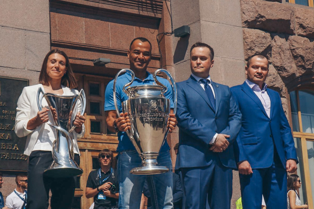 В четверг, 24 мая, на Крещатик прибыли два кубка Лиги Чемпионов, мэр Киева открыл фан-зоу ЛЧ-2018.