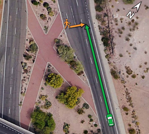 Место аварии и схема движения автомобиля и пешехода Фото: NTSB