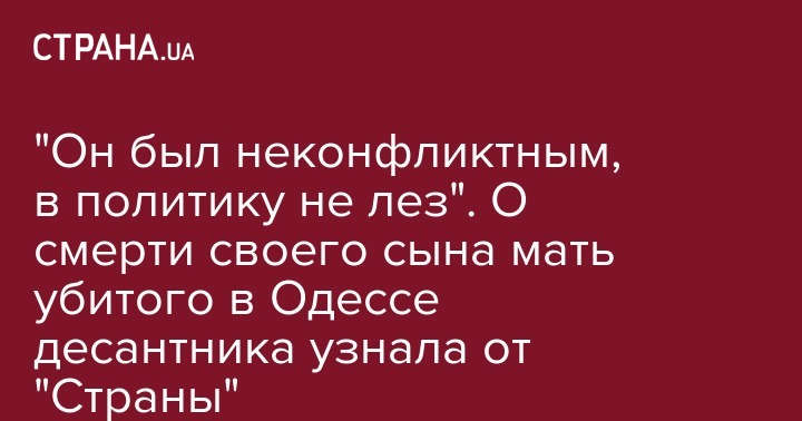 О том, что 29-летний десантник 25-й аэромобильной бригады ВСУ был зарезан накануне вечером в Одессе его мать узнала от корреспондента "Страны". Полиция не сообщила ей об этом.