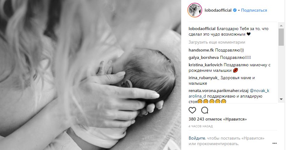 Артистка на фото держит малышку на руках и кормит грудью. "Благодарю Тебя за то, что сделал это чудо возможным", - подписала снимок Лобода.
