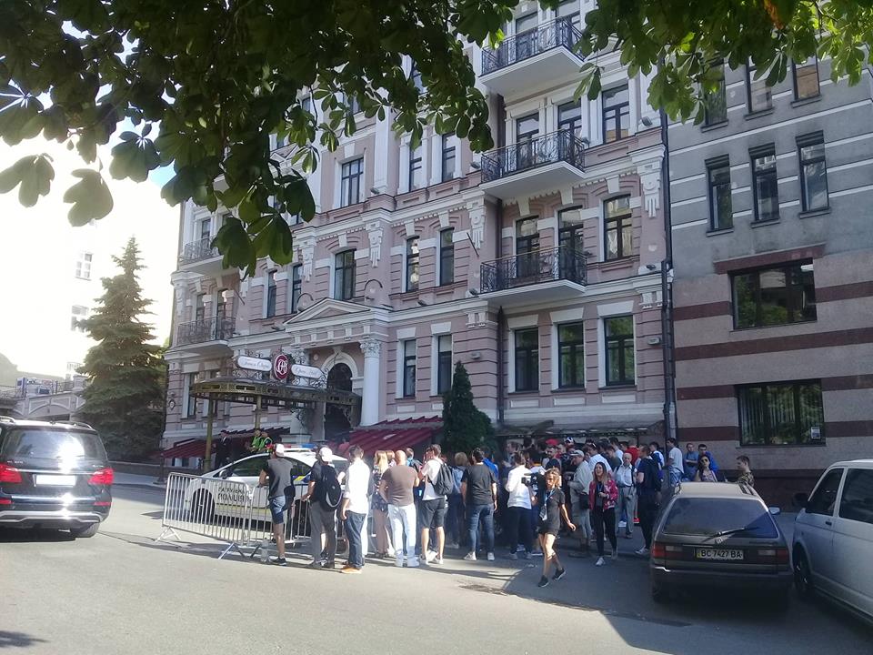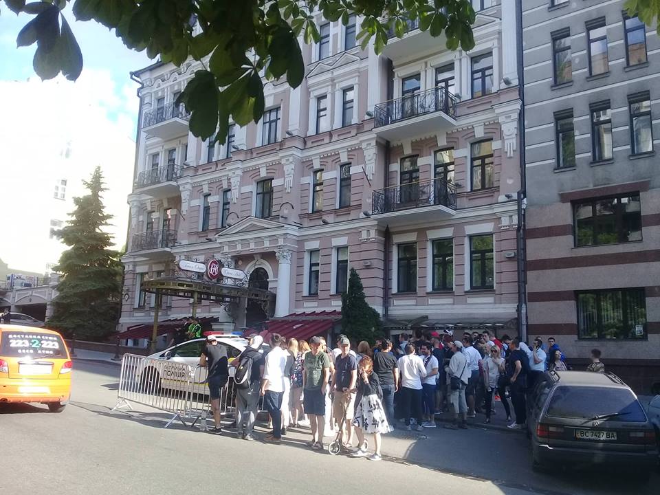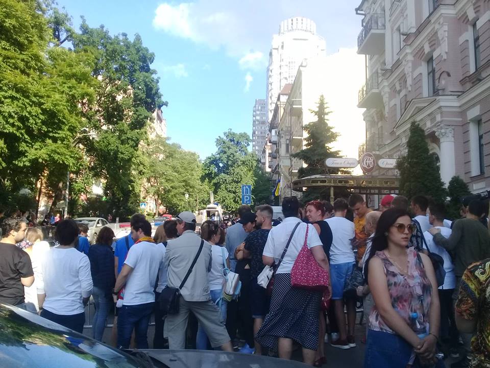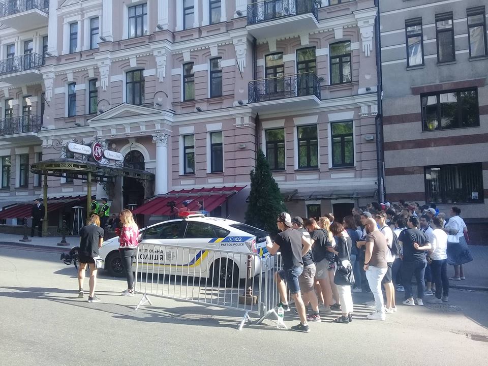 В пятницу, 25 мая в Киеве на улице Богдана Хмельницкого, перед Опера Отелем, где живут футболисты, - собрались болельщики.