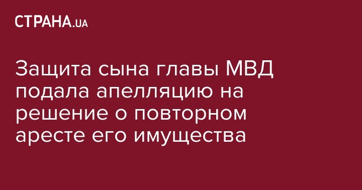 Защита сына главы МВД подала апелляцию на решение о повторном аресте его имущества
