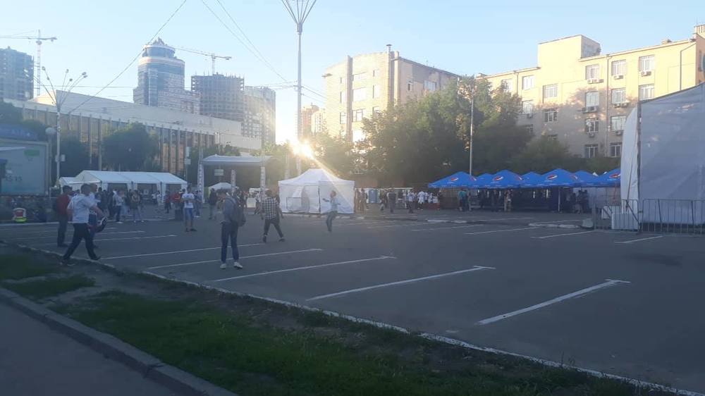 Территория перед Дворцом Украина также опустела. Вероятно, все болельщики уже заняли места в фан-секторах и на трибунах НСК "Олимпийский".