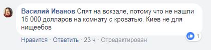 "Спят на вокзале, потому что не нашли 15 000 долларов на комнату с кроватью. Киев не для нище@бов", – считает Василий Иванов. И добавляет, что "Супрун (и. о. министра здравоохранения. – Прим. ред.) говорит, что на холодном полу теперь можно".