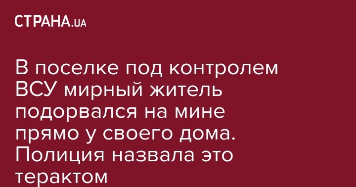 Мужчина наступил на взрывное устройство неподалеку от своего дома, сообщается на сайте Нацполиции Донецкой области.