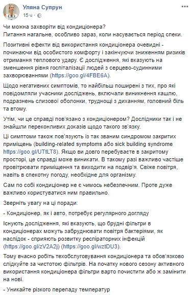 "Он не является чем-то опасным". На этот раз Супрун просветила украинцев насчет кондиционера