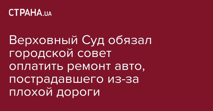 Верховный Суд обязал городской совет оплатить ремонт авто, пострадавшего из-за плохой дороги