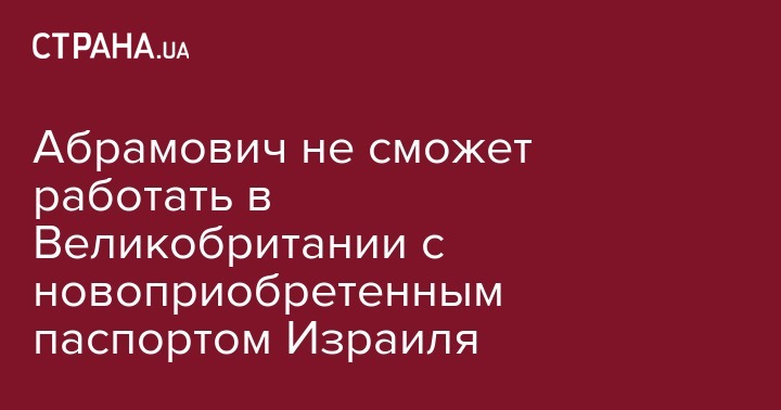 Российский миллиардер и владелец английского футбольного клуба "Челси" Роман Абрамович, который получил гражданство Израиля, в случае приезда в Великобританию с новым паспортом - не сможет работать и заниматься там бизнесом.