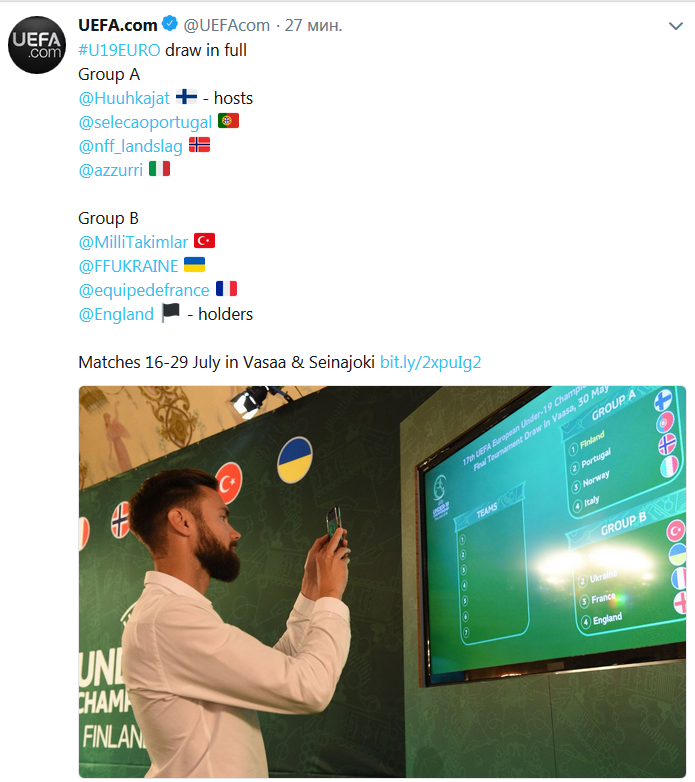 В среду, 30 мая, в финском городе Вааса прошла жеребьевка чемпионата Европы по футболу для юношеских команд (U-19). Сборная Украины попала в группу "В" вместе с командами Турции, Франции и Англии.