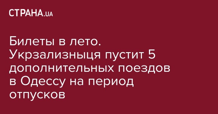 "Укрзализныця" назначила пять дополнительных поездов на период летних отпусков в Одессу. Об этом сообщает пресс-служба компании.