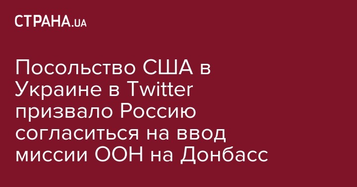 Посольство США в Украине в Twitter призвало Россию согласиться на ввод миссии ООН на Донбасс