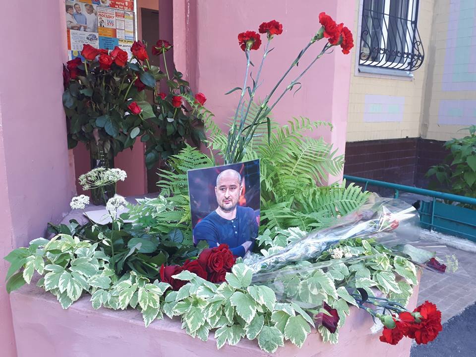 После известия о том, что журналист Аркадий Бабченко остался в живых, цветы около его подъезда вызывают вопрос у жильцов дома.