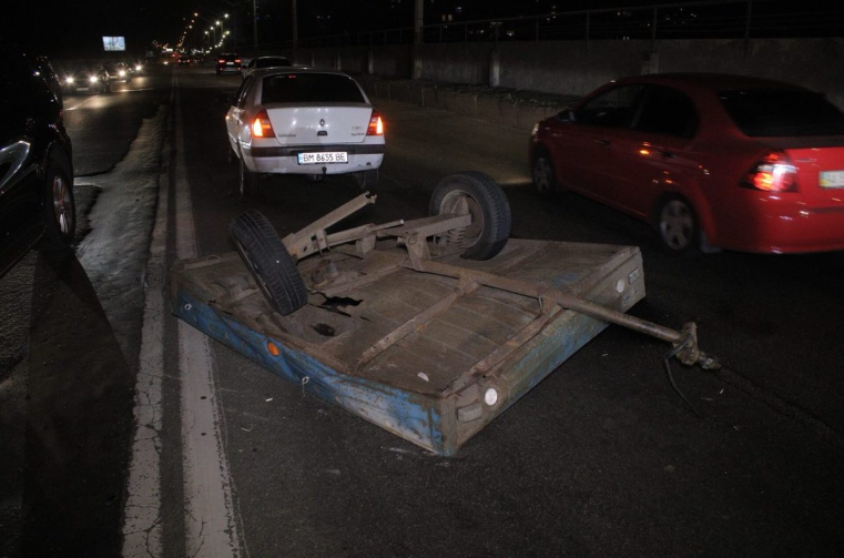 На мосту Метро в Киеве прицеп, который отцепился от Renault Symbol, врезался в Volkswagen Golf.