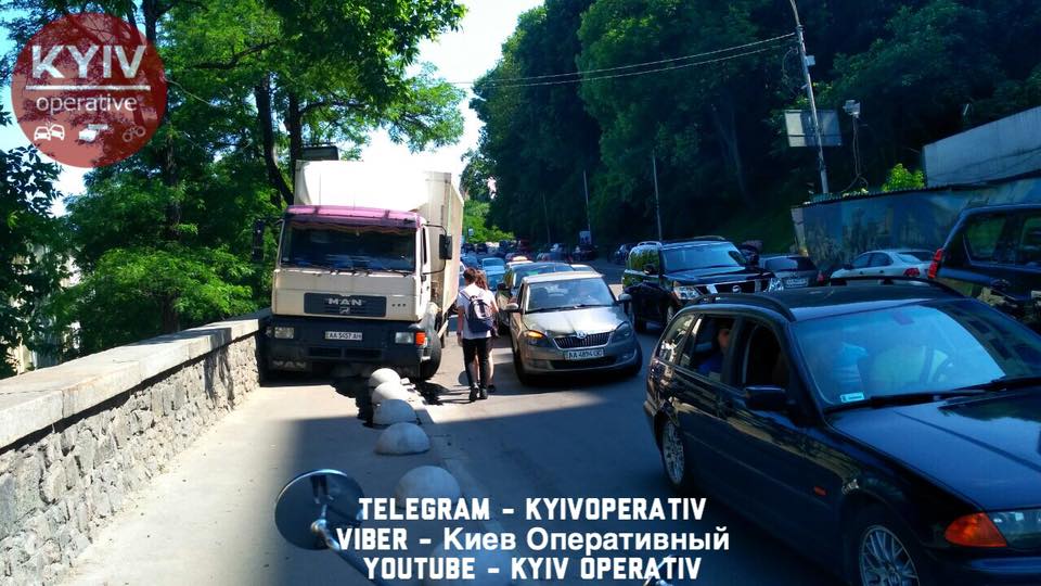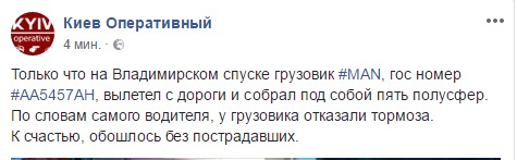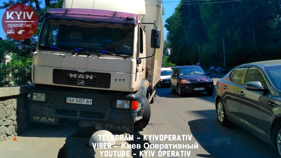 Около 15.00 четверга, 31 мая, в Киеве Владимирском спуске грузовик MAN, вылетел с дороги на тротуар.