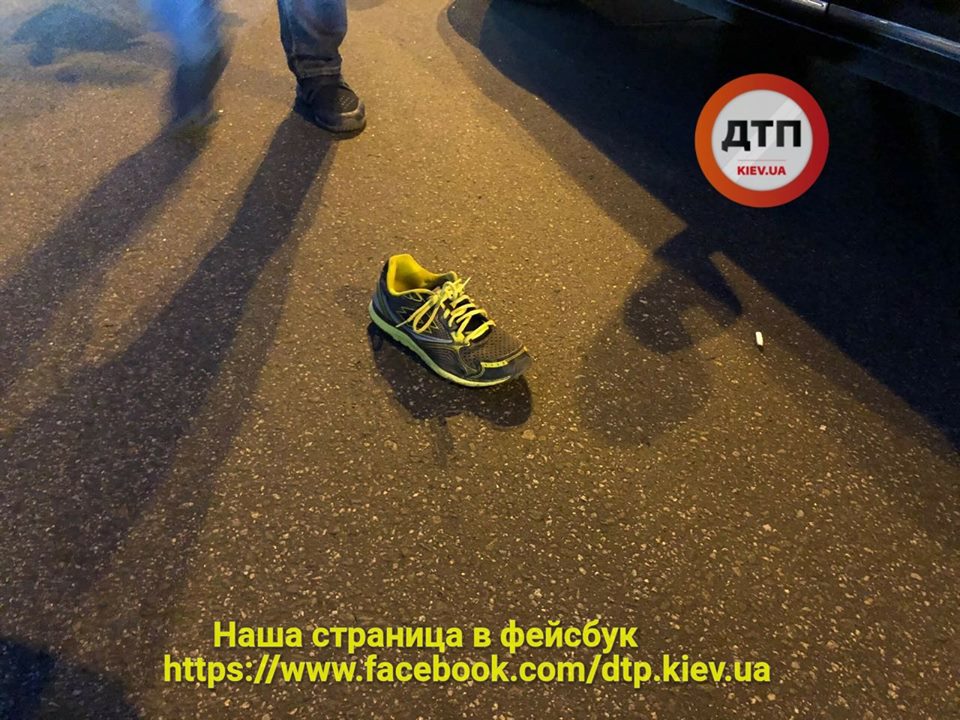 Аккаунт dtp.kiev.ua поместил фотографии места происшествия, на которых видна заблокированная машина, велосипед, кроссовок, вероятно, сбитого мальчика.