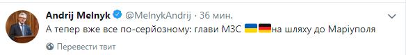 Затем он добавил, что "теперь все серьезно" и главы МИД на пути в Мариуполь.