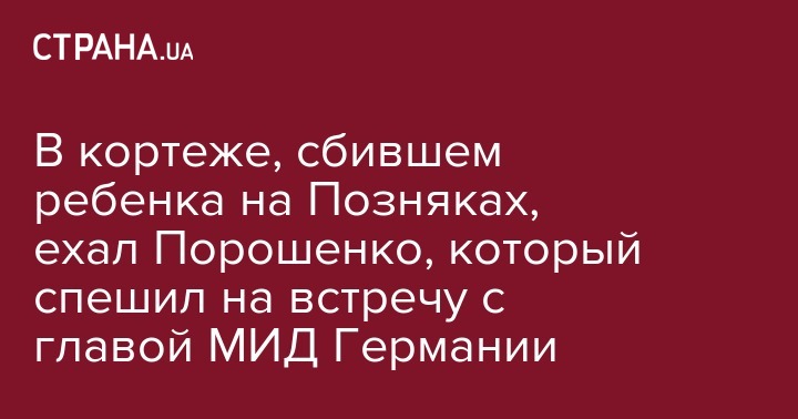 В кортеже, сбившем ребенка на Позняках, ехал Порошенко, который спешил на встречу с главой МИД Германии