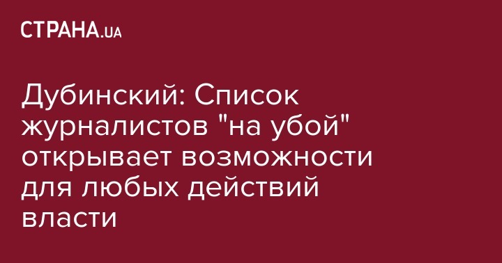 "Расстрельный список Кремля" из 47 журналистов дает власти возможность убирать наиболее неудобных журналистов. Об этом заявил креативный продюсер департамента журналистских расследований "1 +1", редактор программы "Деньги" Александр Дубинский в эфире телеканала ZIK.