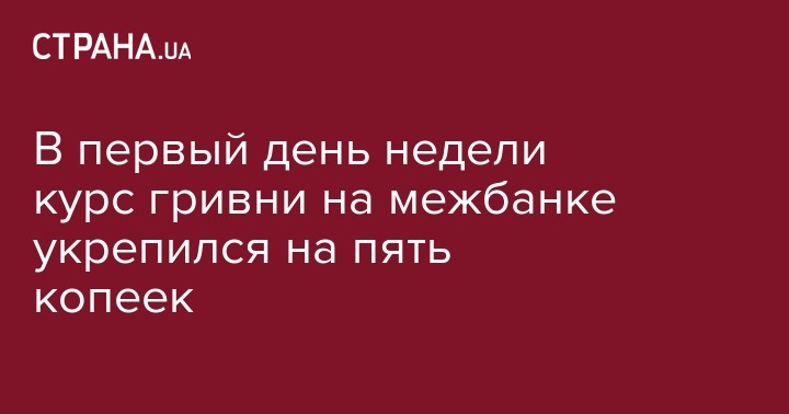 В первый день недели курс гривни на межбанке укрепился на пять копеек