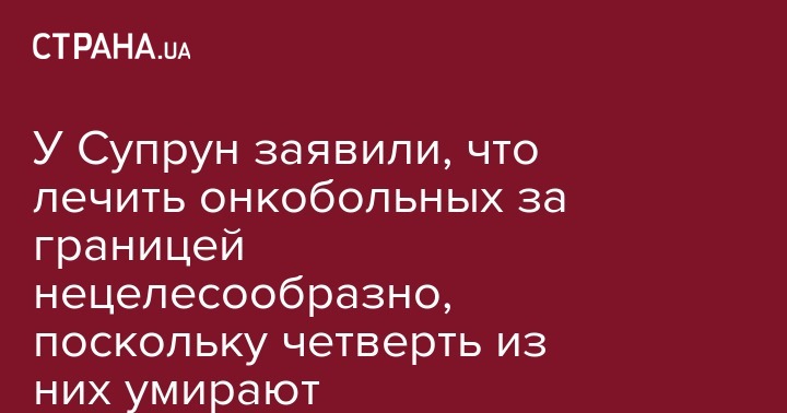 У Супрун заявили, что лечить онкобольных за границей нецелесообразно, поскольку четверть из них умирают