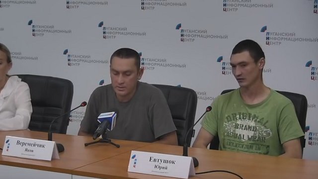 Сепаратистские СМИ на Луганщине опубликовали видео, на котором указано, что один из пленных находится в городе Первомайск, а другой - в Луганске. Военные во время "пресс-конференции" в плену заявили, что призывают своих собратьев сложить оружие.