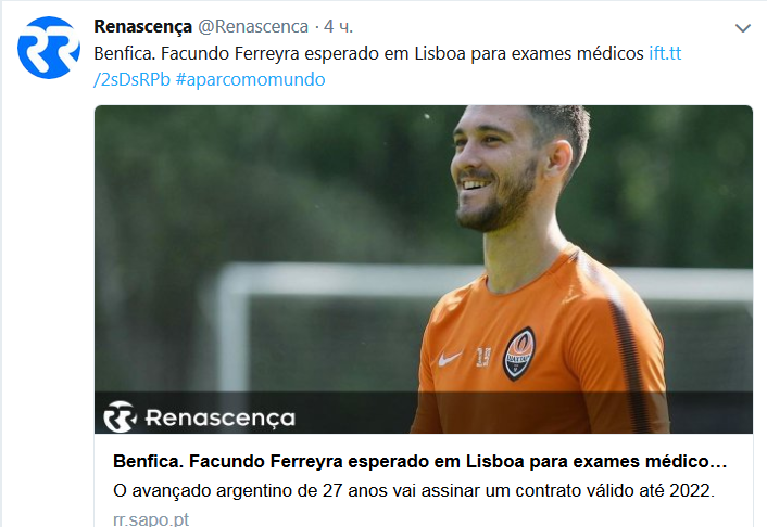 Экс-форвард Шахтера подпишет контракт с Бенфикой после медосмотра