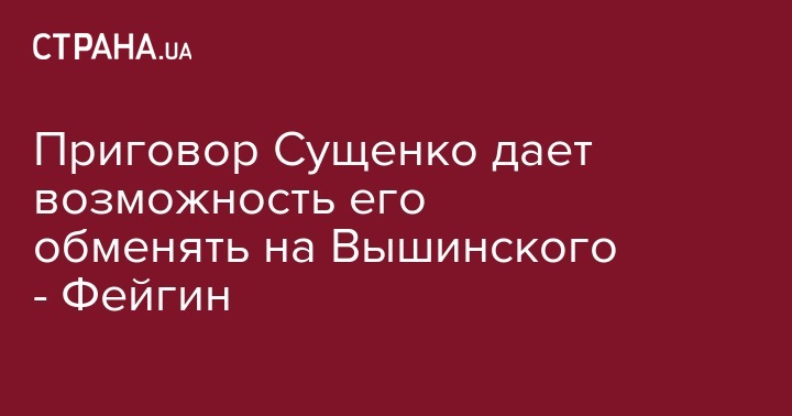 "Приговор Сущенко открывает возможность для его обмена на Вышинского. Киев этого хочет", - отметил Фейгин.