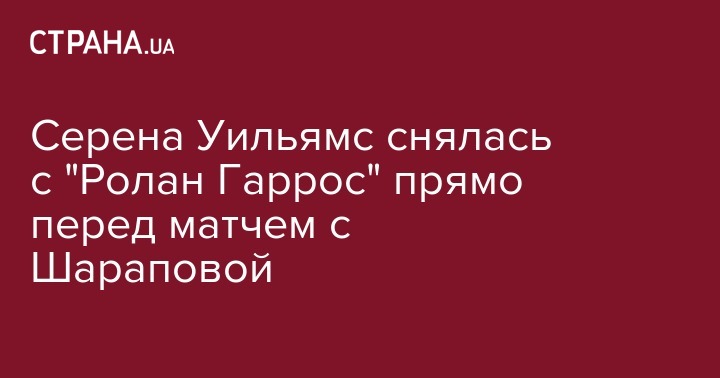 Серена Уильямс снялась с "Ролан Гаррос" прямо перед матчем с Шараповой