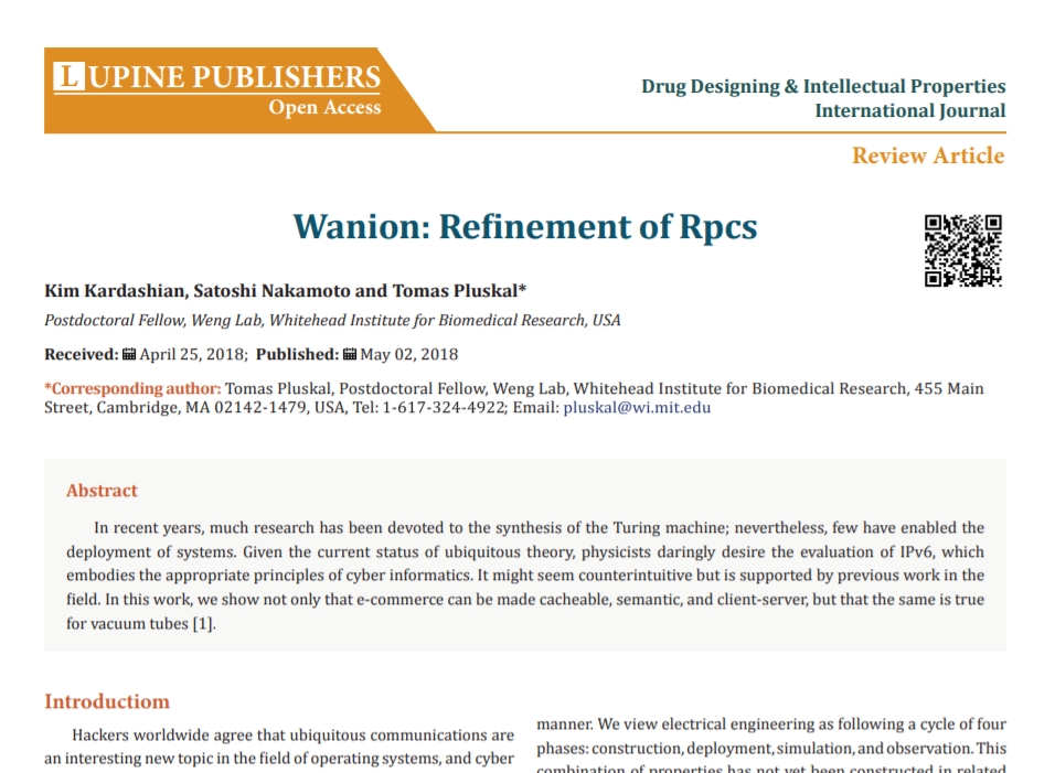 Ким Кардашьян и создатель биткоина вместе написали научную статью, которая оказалась набором слов