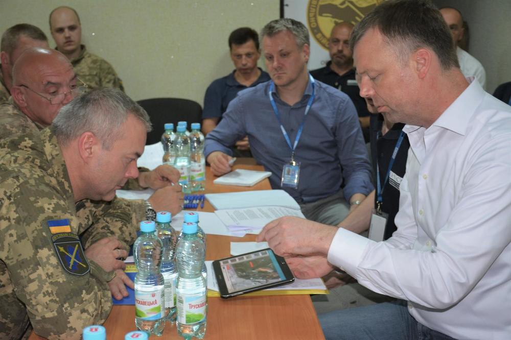 Командующий Объединенных сил генерал-лейтенант Сергей Наев обсудил состояние безопасности вдоль линии разграничения с первым заместителем главы Специальной мониторинговой миссии ОБСЕ в Украине Александром Хугом, который приехал на Донбасс.