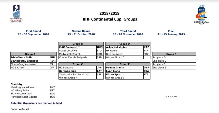 Во вторник, 5 июня стал известен календарь хоккейного Континентального кубка сезона 2018/2019.