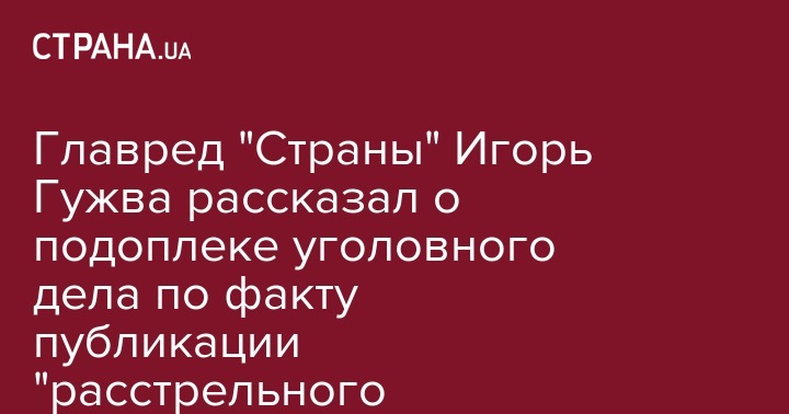 Об этом написал главный редактор "Страны" Игорь Гужва на своей странице в Facebook.