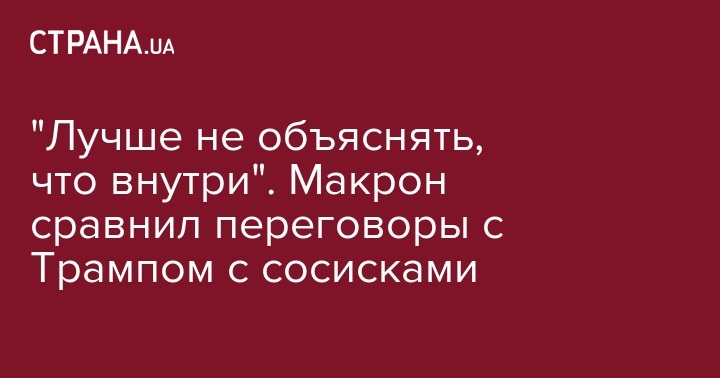Президент Франции Эммануэль Макрон назвал свои телефонные разговоры с президентом США Дональдом Трампом и другими мировыми лидерами похожими на сосиски: лучше не объяснять, что внутри. Об этом пишет Reuters.