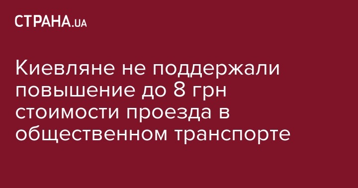 Киевляне не поддержали запланированное на середину июля повышение стоимости проезда в общественном транспорте до 8 грн. В процессе общественного обсуждения на сайте КГГА, которое проходило с 17 мая по 3 июня, "против" высказались 993 человека, а "за" - только 294, пишет "Сегодня".
