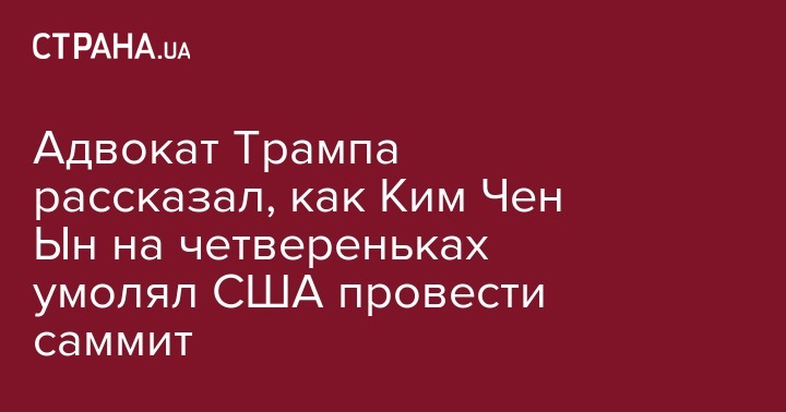 Адвокат Дональда Трампа, который ранее подтвердил встречу с Ким Чен Ыном 12 июня, рассказал, что лидер КНДР "на четвереньках умолял Трампа провести саммит" после того, как Белый дом отложил встречу.